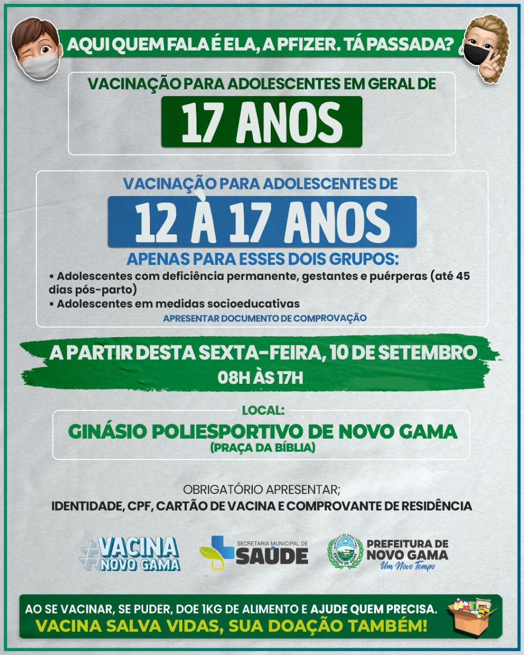 A Prefeitura de Novo Gama por meio da Secretaria de Saúde, começará a vacinar a galera de 17 anos