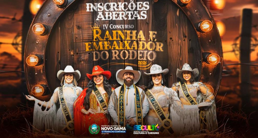 Temos a alegria de anunciar que estão abertas as inscrições para o IV Concurso da Rainha e Embaixador do Rodeio de 2026. Convidamos os moradores da cidade a participarem dessa festa, que celebra a beleza, o carisma e a identidade cultural do nosso município. E tem mais, esse ano com a grande novidade de homens e mulheres a partir dos 16 anos podem participar.