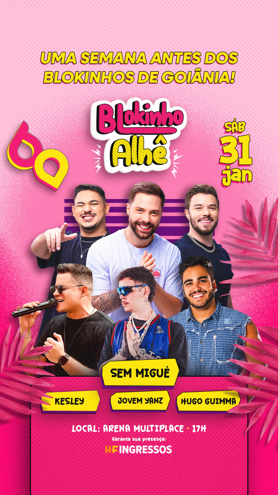 No dia 31 de janeiro, a partir das 17h, a Arena Multiplace se transforma no cenário perfeito para receber o Blokinho Alhê, o esquenta oficial dos bloquinhos de Goiânia e um dos eventos mais aguardados do pré-Carnaval na capital.