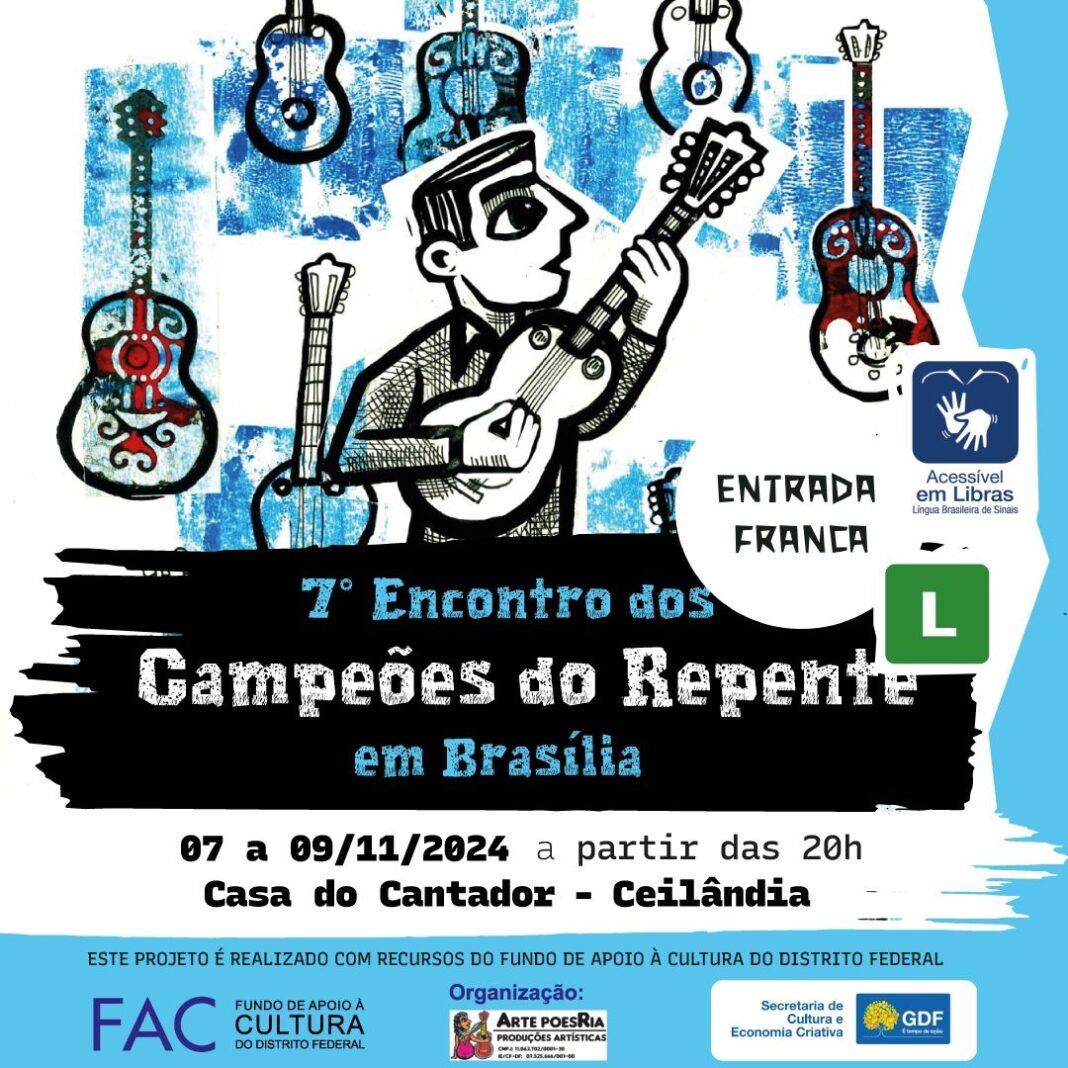 O evento, realizado na icônica Casa do Cantador em Ceilândia — carinhosamente chamada de Palácio da Poesia e da Literatura de Cordel, tem apoio do Fundo de Apoio à Cultura do Distrito Federal (FAC-DF) e terá também apresentações ao vivo transmitidas no Facebook e um registro audiovisual a ser disponibilizado no canal do YouTube oficial do projeto “Campeões do Repente”. “A proposta é levar o repente para um público ainda maior, preservando a tradição oral e a cultura brasileira”, afirma um dos coautores do projeto, o repentista João Santana.