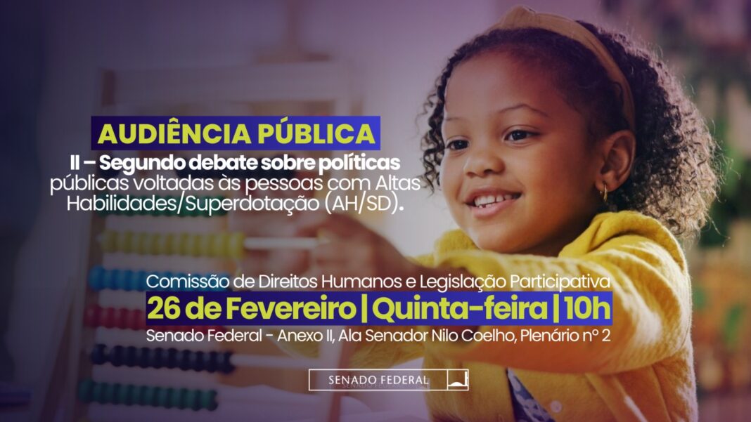 O debate busca enfrentar lacunas nas políticas públicas, ouvir as famílias e discutir ações intersetoriais que garantam atendimento adequado, inclusão educacional e reconhecimento das especificidades das pessoas com AH/SD no Brasil.