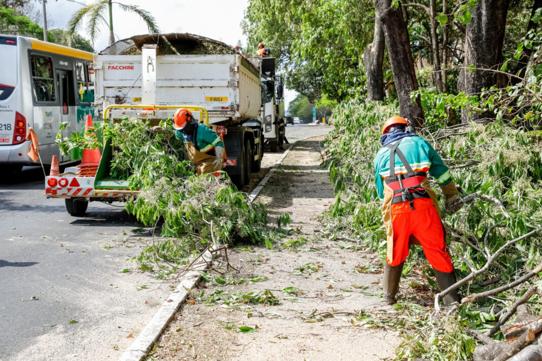 Neste ano, durante as últimas chuvas, a Novacap registrou 40% menos quedas de árvores e galhos em relação a 2022. Além de reduzir riscos, a retirada dos galhos aumenta a penetração de luz e libera a passagem de pedestres e carros nas vias.
