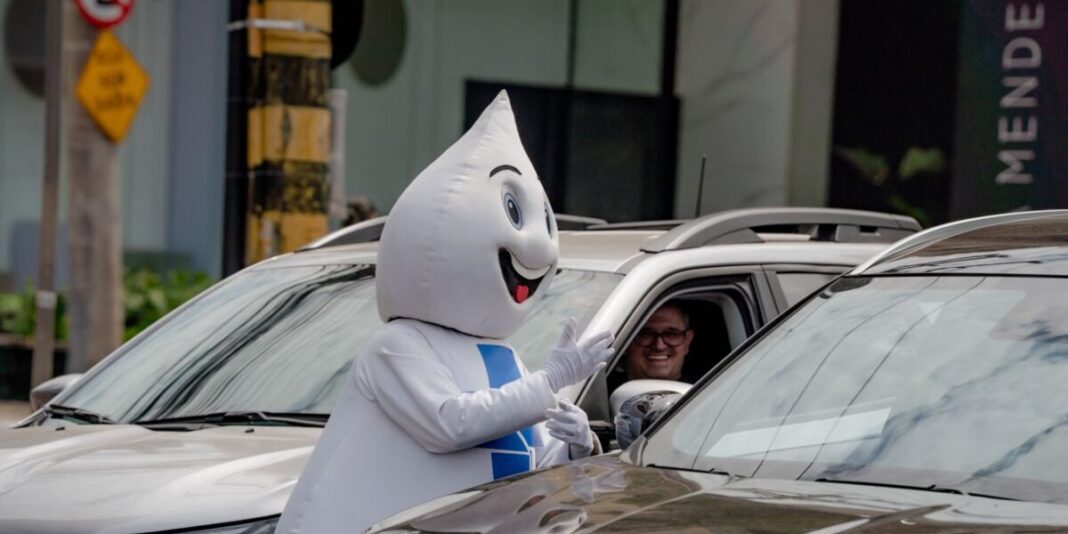 O personagem Zé Gotinha participou da ação, alertando as pessoas sobre a importância das vacinas para a saúde individual e coletiva.