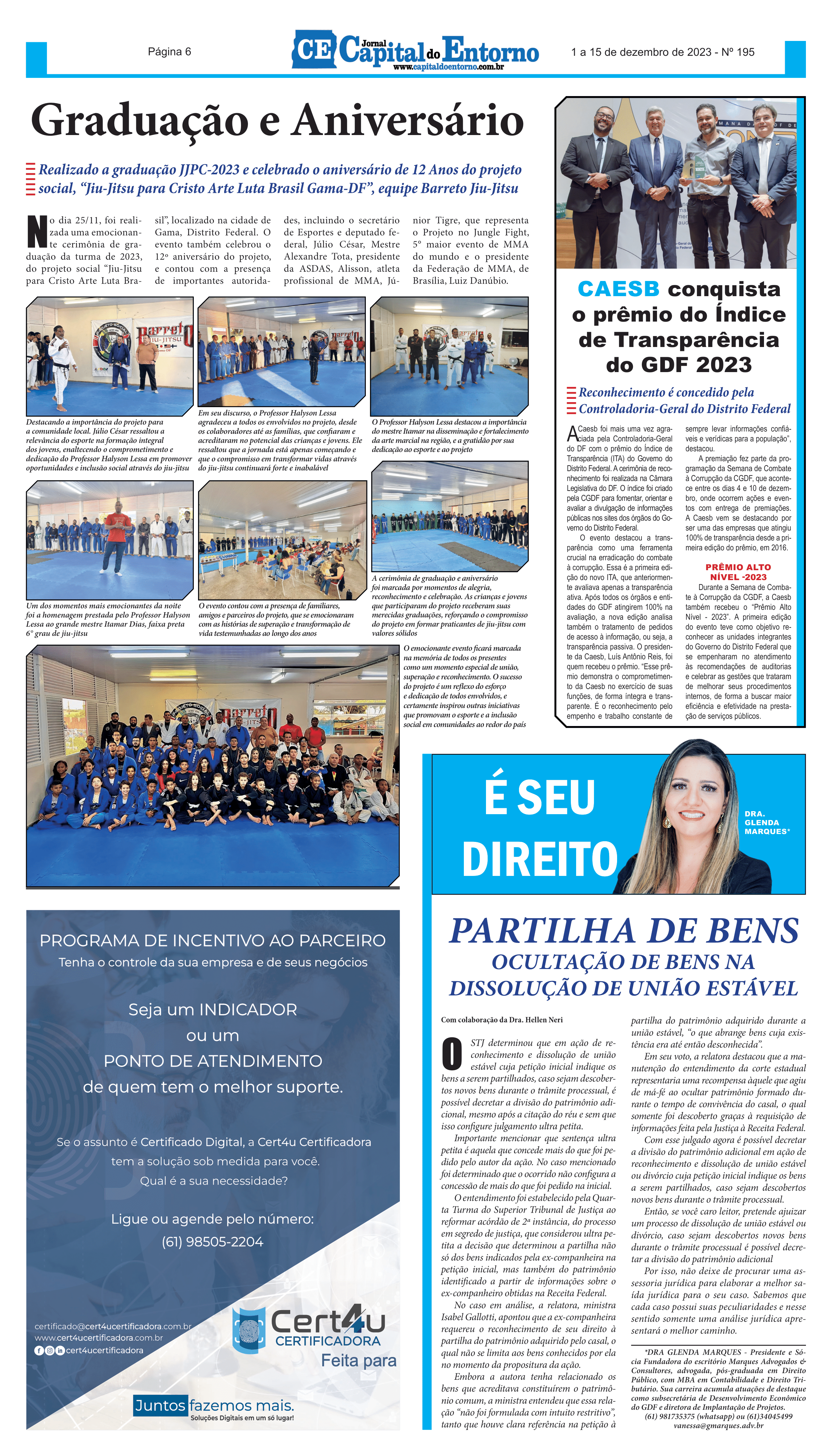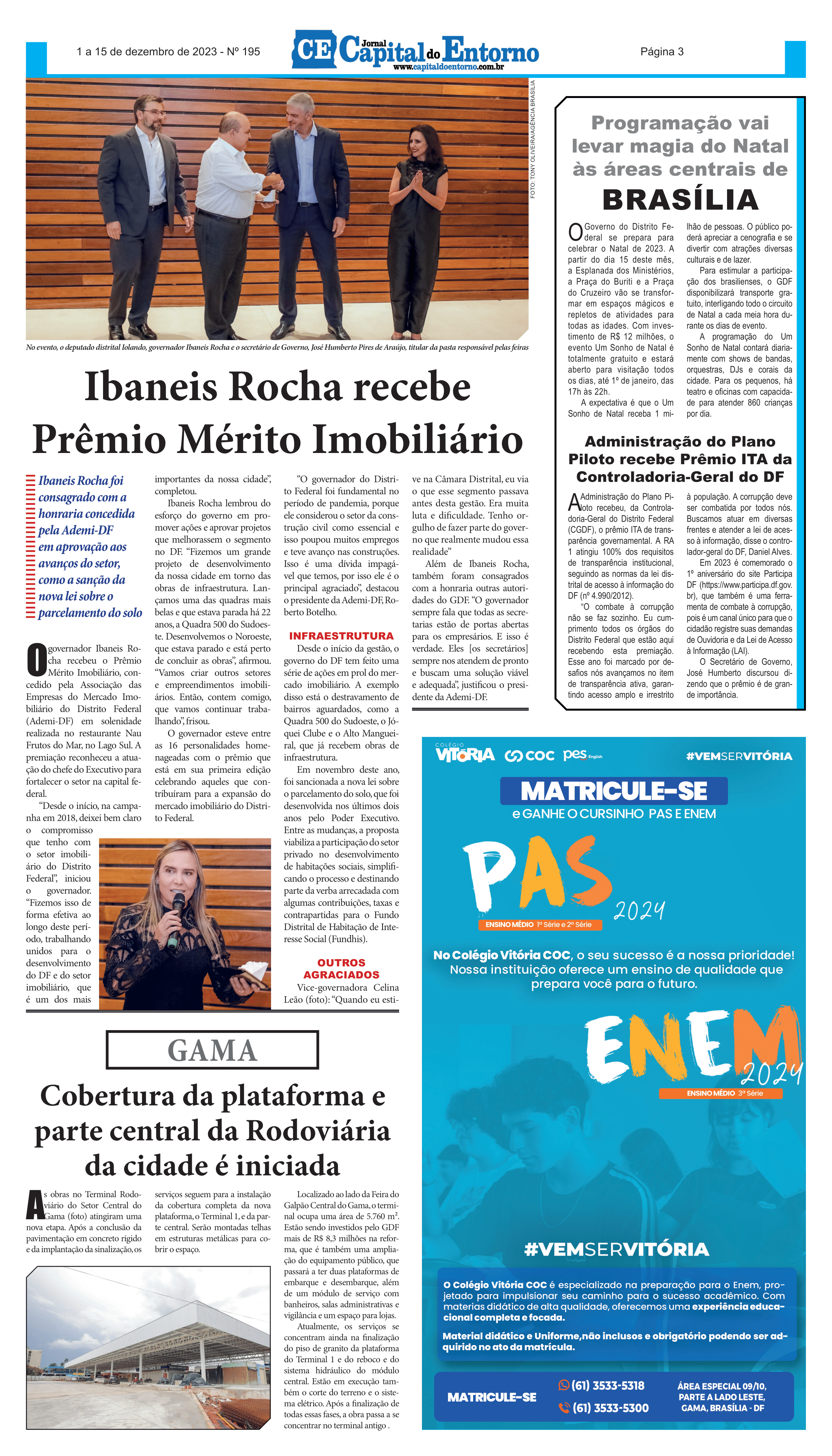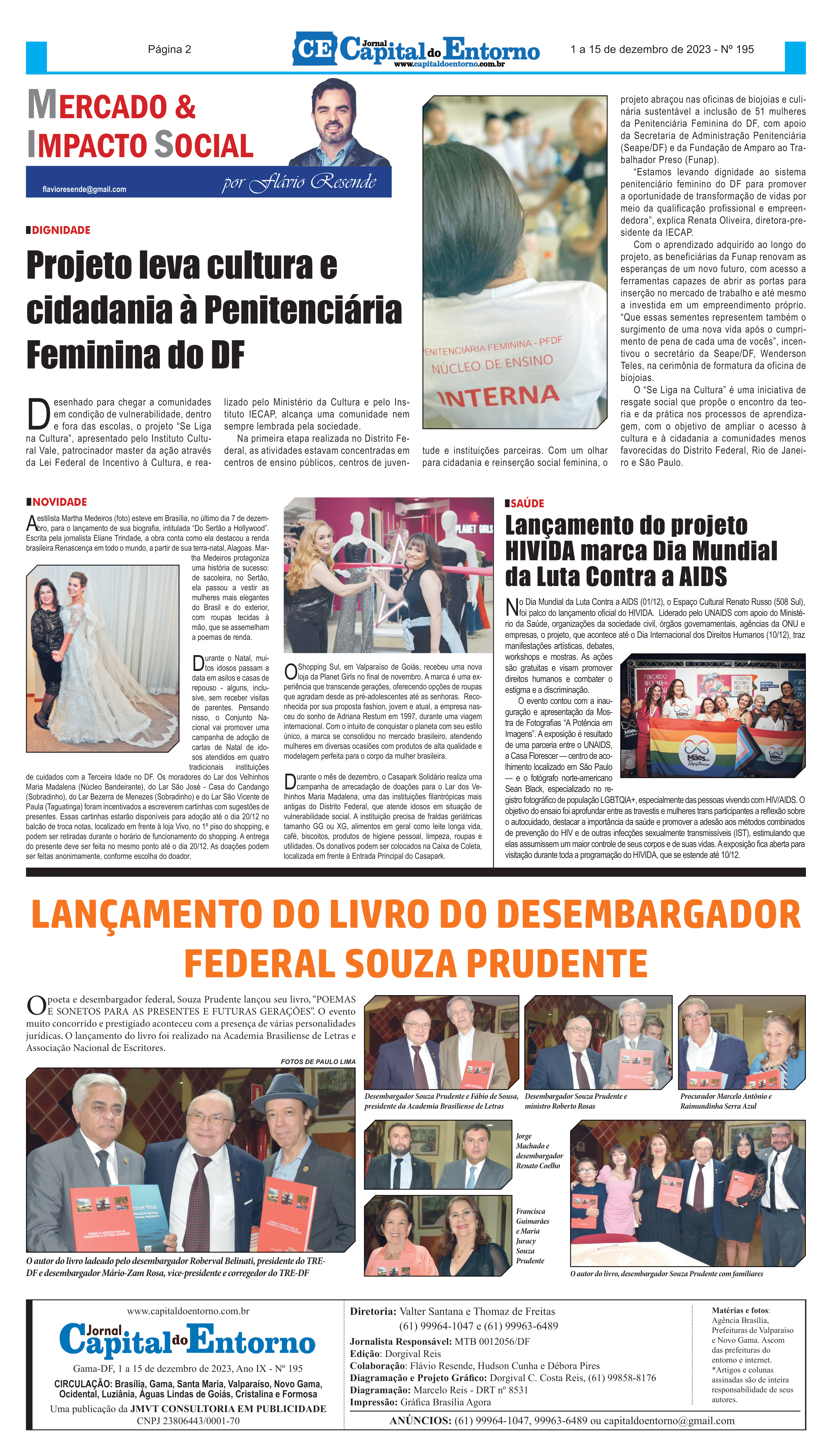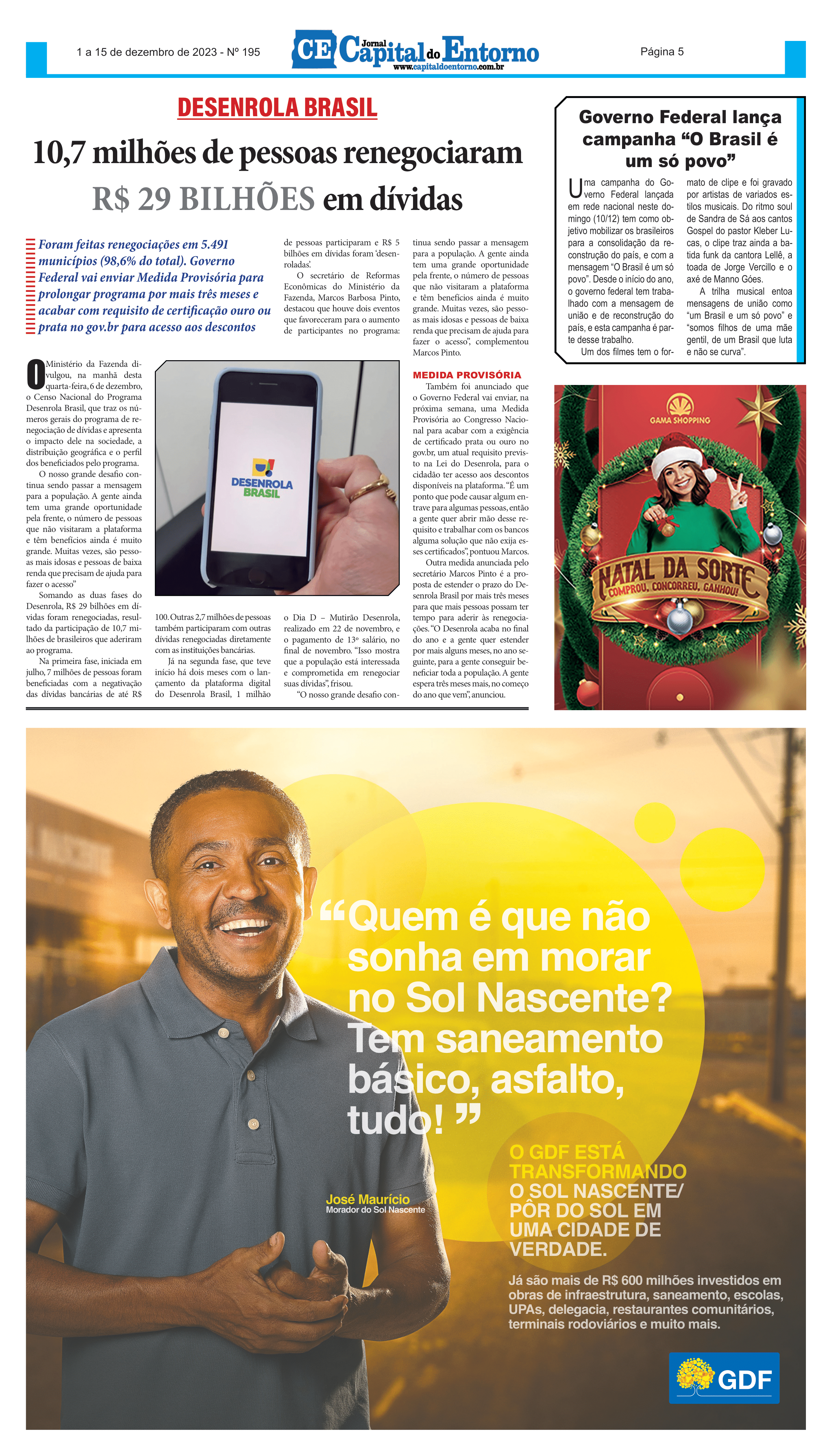 Edição 195 – 1 a 15 de dezembro de 2023 Versão Impressa 12 de dezembro de 2023 FacebookTwitterPinterestWhatsApp Últimas Edições Edição 249 – 1 a 15 de março de 2026 Edição 248 – 16 a 28 de fevereiro de 2026 Edição 247 – 1 a 15 de fevereiro de 2026 Edição 246 – 16 a 31 de janeiro de 2026 Edição 245 – 1 a 15 de janeiro de 2026 Edição 244 – 16 a 31 de dezembro de 2025 Artigo anteriorBrasília será palco para a retomada do Salão Nacional do Turismo.Próximo artigoGestão de Caiado é aprovada por 81,4% dos goianos Leia também Manhattan Shopping reúne empreendedoras em encontro sobre saúde mental e negócios sustentáveis Falta de documentos expõe migrantes à informalidade e à violação de direitos no país Lançamento de peso: HeyDoc! se aproxima do techno em estreia pela HEXAGON de Don Diablo Final do Candangão terá transporte e ingressos gratuitos para torcedores IV Encontro de Teatro Lambe-Lambe reúne artistas do Brasil e do exterior em Brasília, com entrada gratuita