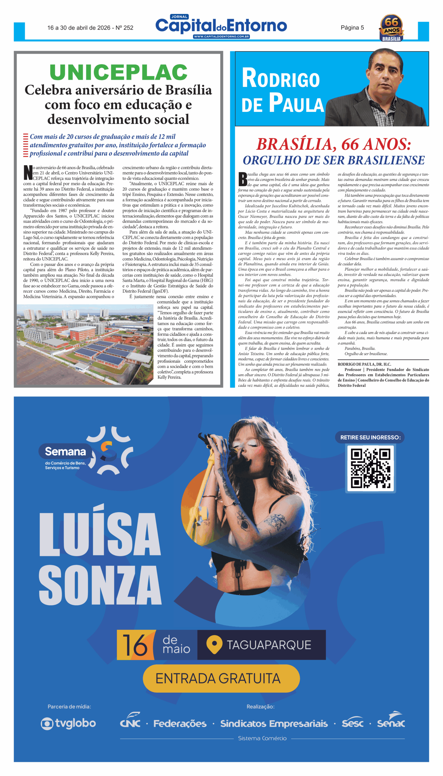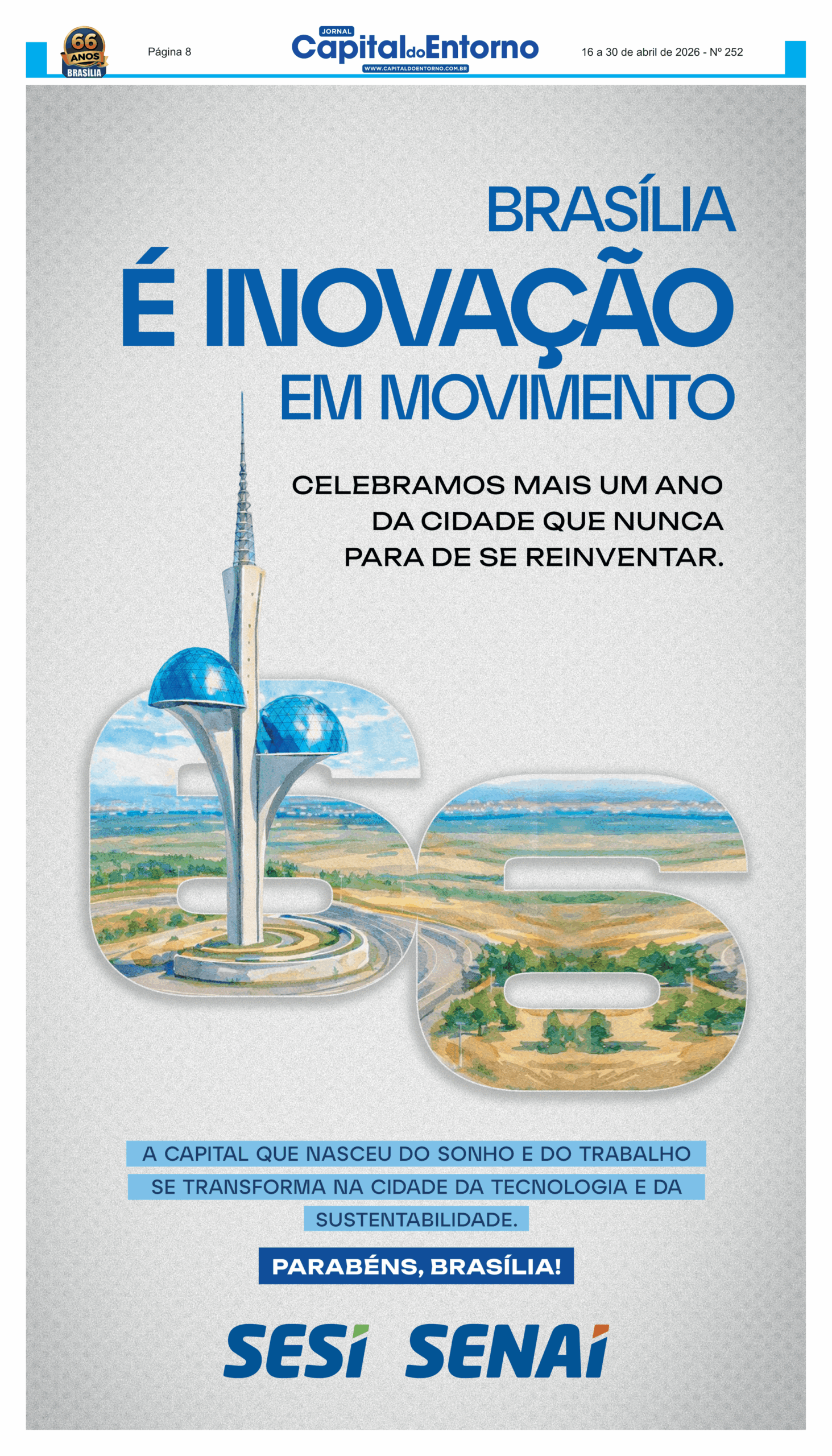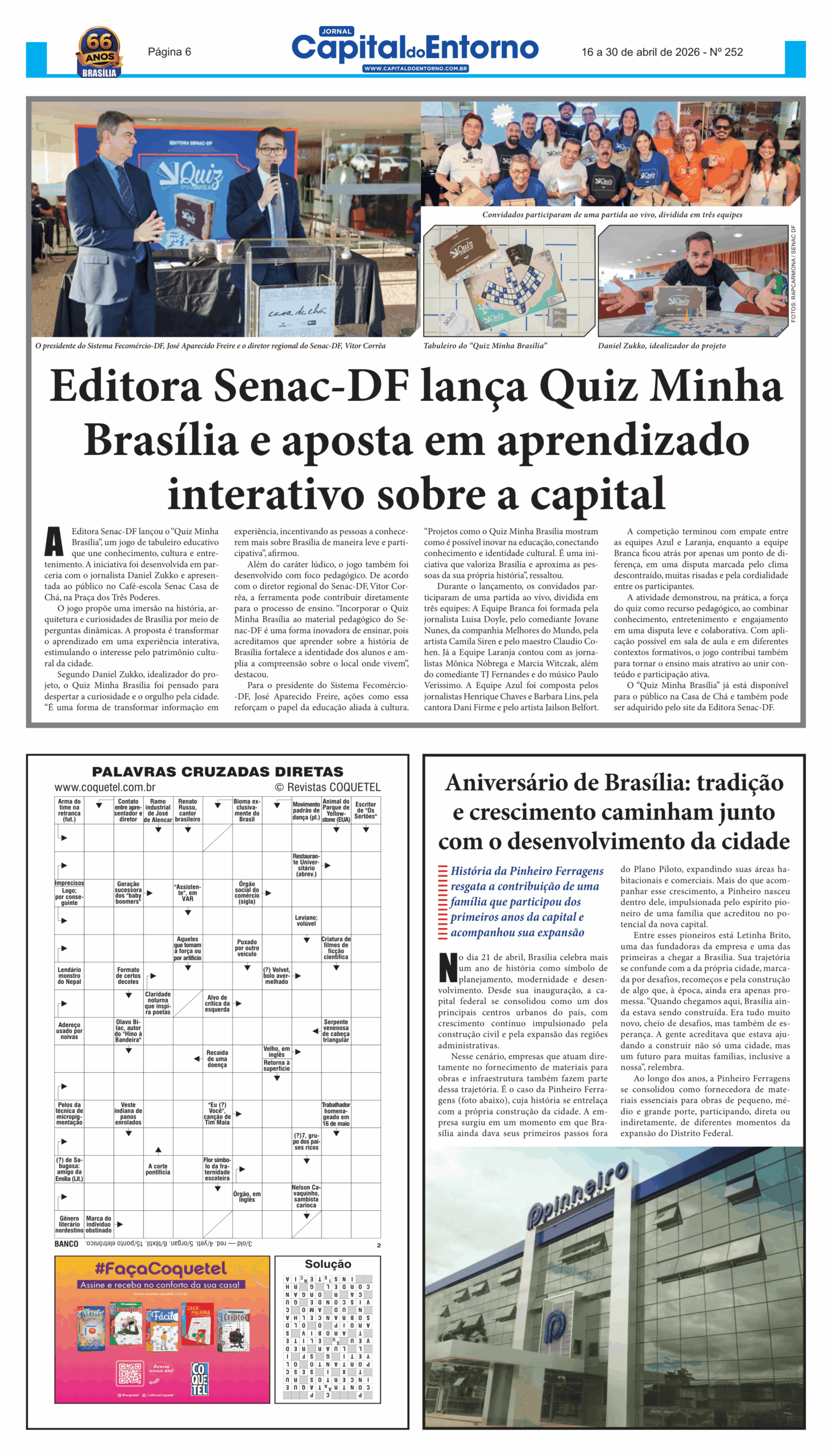 Edição 252 – 16 a 30 de abril de 2026 Versão Impressa 18 de abril de 2026 FacebookXPinterestWhatsApp Últimas Edições Edição 251 – 1 a 15 de abril de 2026 Edição 250 – 16 a 31 de março de 2026 Edição 249 – 1 a 15 de março de 2026 Edição 248 – 16 a 28 de fevereiro de 2026 Edição 247 – 1 a 15 de fevereiro de 2026 Edição 246 – 16 a 31 de janeiro de 2026 Artigo anteriorHot Wheels Monster Trucks Live™ chega ao Brasil pela primeira vez com o novo caminhão: RhinomitePróximo artigoHipertensão: nova diretriz brasileira redefine pressão normal e acende alerta para 30% da população adulta Leia também Brasília Game Hub completa um ano consolidando-se como polo de desenvolvimento de games na América Latina Circo Boneco e Riso encerra circulação em escolas públicas com últimas apresentações em abril Shell apresenta a quarta edição do Complexo Cultural do Choro, que abre com tributo a Moraes Moreira nos 1 e 2 de maio Vacina na gestação fortalece a saúde materna e protege o bebê desde os primeiros meses de vida Festival de forró na Chapada dos Veadeiros terá música, natureza e experiências culturais