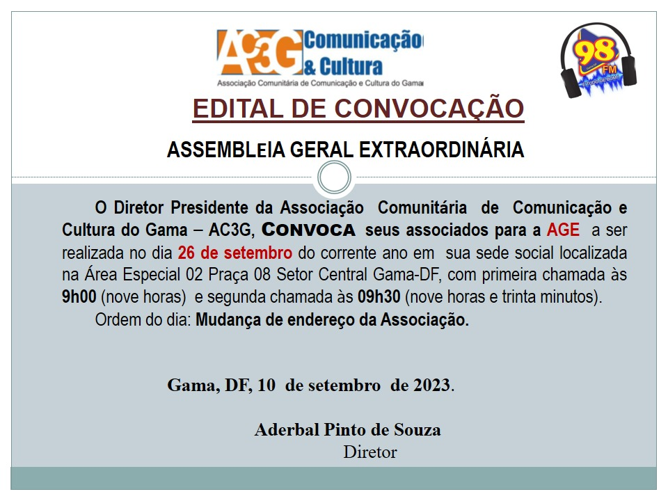 Edital de convocação: Associação Comunitária e Cultura do Gama