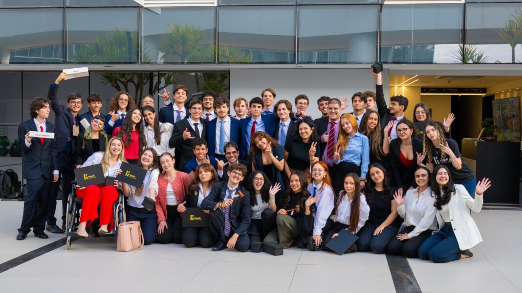 Estudantes do Ensino Médio participaram da Hayek Global Internationali Model United Nations (HGI MUN), uma simulação diplomática inteiramente em inglês realizada em Brasília. O evento, promovido pela Hayek Global College em parceria com a Internationali Negotia, proporcionou aos jovens uma experiência prática em negociações, debates e resolução de conflitos globais, com interação com estudantes de outros países.