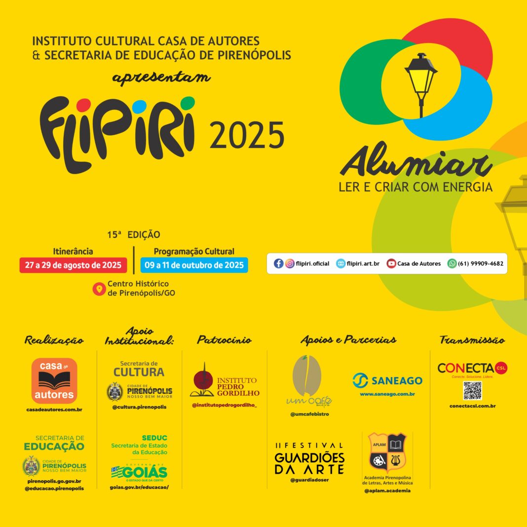 Idealizada pela escritora e contadora de histórias Iris Borges, a FLIPIRI nasceu em 2009 inspirada pela experiência da FLIP – Festa Literária Internacional de Paraty. Desde então, o festival já reuniu milhares de visitantes e doou mais de 17 mil livros à rede pública de ensino de Pirenópolis. A programação completa da FLIPIRI 2025, destacando as ações no centro histórico de Pirenópolis, será divulgada em setembro.