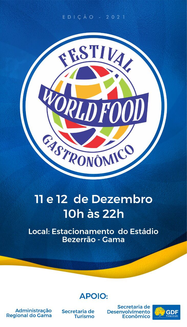 A Região Administrativa do Gama recebe no próximo final de semana (11 e 12/12), o projeto gastronômico, World Food Festival, das 10h às 22 horas, no estacionamento do Estádio Bezerrão. Além de uma deliciosa imersão no diversificado mundo da gastronomia, o evento, realizado pela Casa de Cultura Telar, com o apoio da Secretaria de Turismo do Distrito Federal, contará com apresentações culturais e feiras de exposição.
