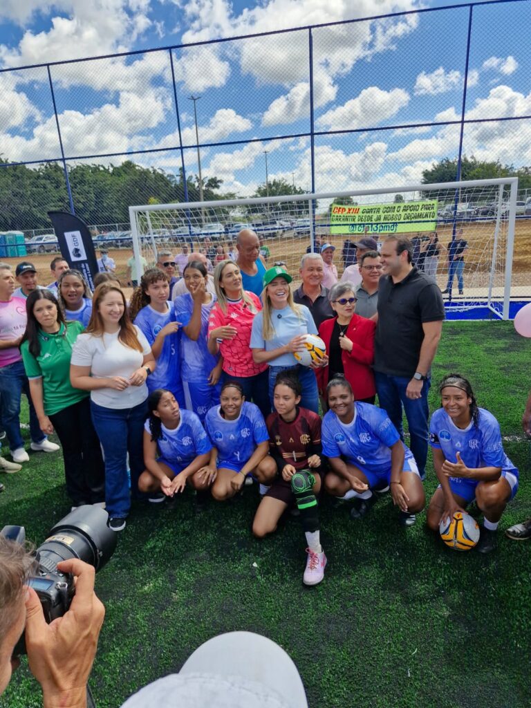O Governo do Distrito Federal inaugurou neste sábado (18/04) o novo campo de grama sintética do Alvorada, localizado no Parque Urbano Norte, no Gama. A entrega contou com a presença da governadora em exercício, Celina Leão, da deputada distrital Jaqueline Silva e da administradora regional do Gama, Thabata Almeida, além de autoridades locais, lideranças comunitárias e moradores da região.