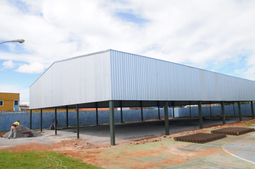 Falta de cobertura já não é problema para o CEF 213 e a EC 116, que passou por intervenções, como a construção de um novo parquinho infantil, com brinquedos feitos de madeira, novo estacionamento com calçamento de bloquete, além de pintura interna e externa e interna do muro. Se a chuva não atrapalhar, a cobertura da quadra deve ficar pronta nas próximas semanas. Uma melhoria que vai beneficiar 750 alunos.