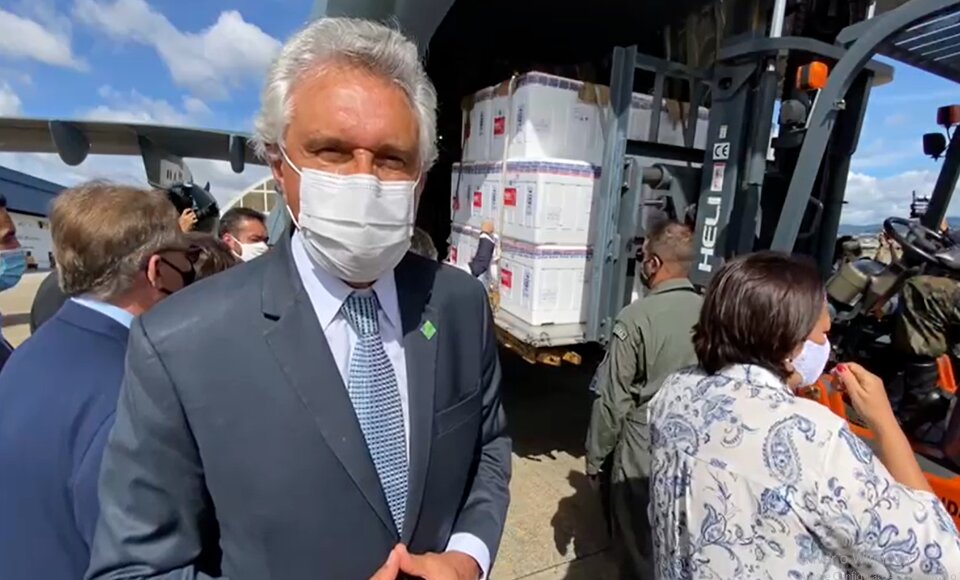 O governador Ronaldo Caiado lança oficialmente, nesta segunda-feira (18/01), a Campanha de Vacinação contra a Covid-19 em Goiás. O evento será realizado na Unidade Básica de Saúde do Jardim Leblon, em Anápolis, às 17 horas. Neste momento, Caiado concede entrevista coletiva no Hangar do Estado sobre o plano de imunização estadual. Ele esteve nesta manhã em São Paulo, com o secretário estadual da Saúde, Ismael Alexandrino, durante solenidade simbólica de entrega dos imunizantes pelo Ministério da Saúde aos governadores.