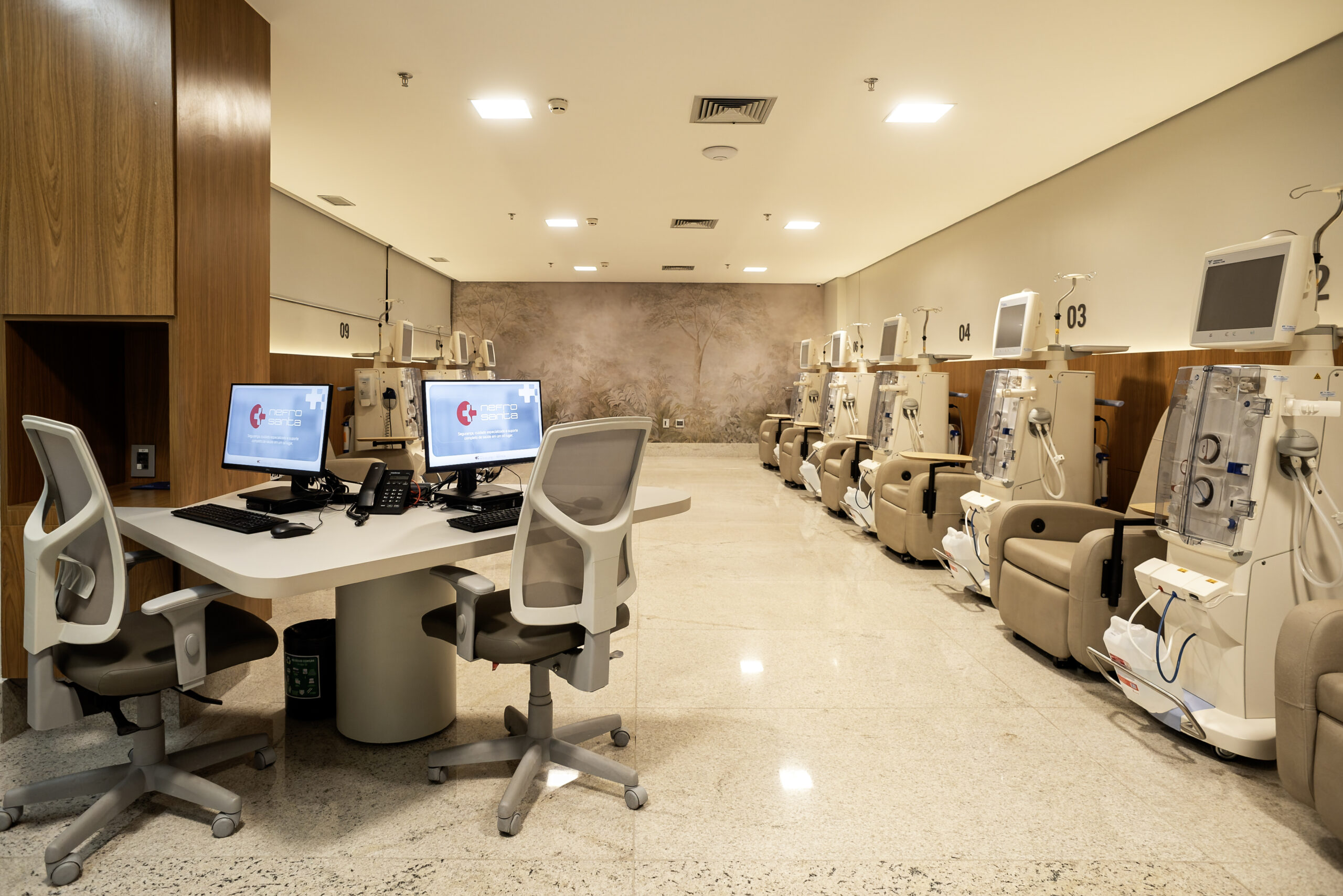 Projetada nos padrões mais modernos e internacionais da nefrologia ambulatorial, a NefroSanta reúne terapia renal substitutiva com máquinas de última geração preparadas para hemodiafiltração on-line, monitoramento contínuo e protocolos baseados em evidências, com rastreabilidade de dados, controle da qualidade da água e detecção automática de falhas. O cuidado integral contempla medidas de conforto, atenção nutricional individualizada, acompanhamento psicológico e concierge assistencial que orienta pacientes e familiares durante todo o percurso dentro do hospital.