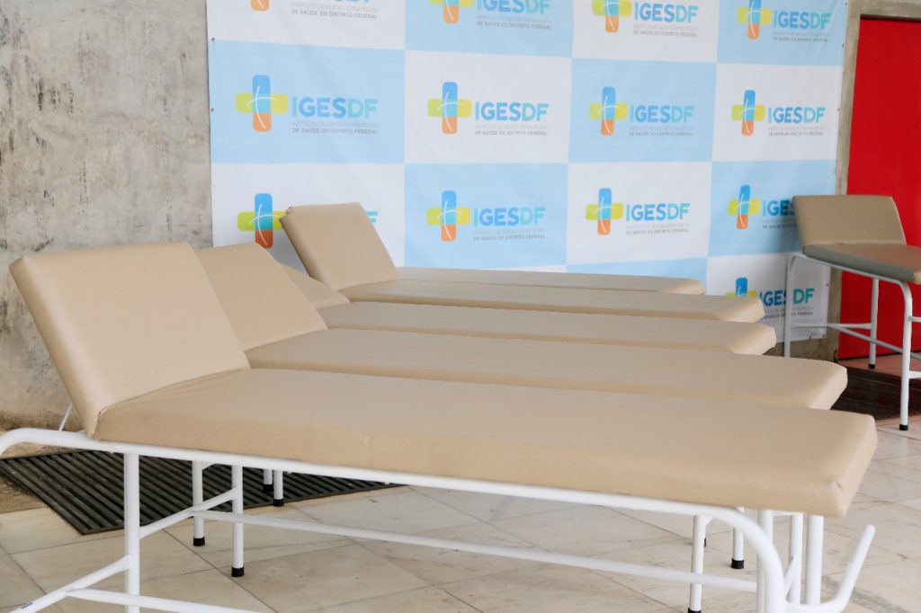 Novo mobiliárioA fim de dar mais comodidade aos pacientes, o Iges investiu R$ 71,7 mil na aquisição de mobílias para o Hospital de Base. Em fevereiro, a unidade recebeu 64 macas, instaladas em consultórios médicos. Em abril, foram 51 poltronas acolchoadas para acompanhantes de enfermarias. Mais R$ 227,6 mil permitiram a compra de 840 escadas de dois degraus — que facilitam o acesso dos pacientes aos leitos —, além do reforço de 33 carrinhos de emergência, para o transporte de medicamentos e de equipamentos usados em ocorrências de paradas cardiorrespiratórias.