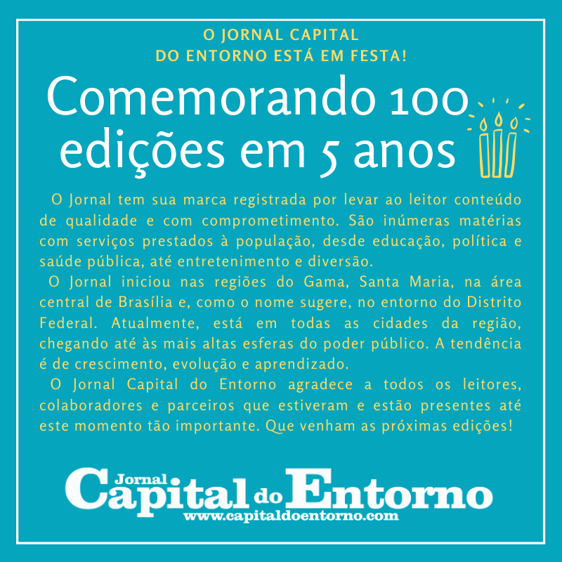 O Jornal Capital do Entorno agradece a todos os leitores, colaboradores e parceiros que estiveram e estão presentes até este momento tão importante. Que venham as próximas edições!