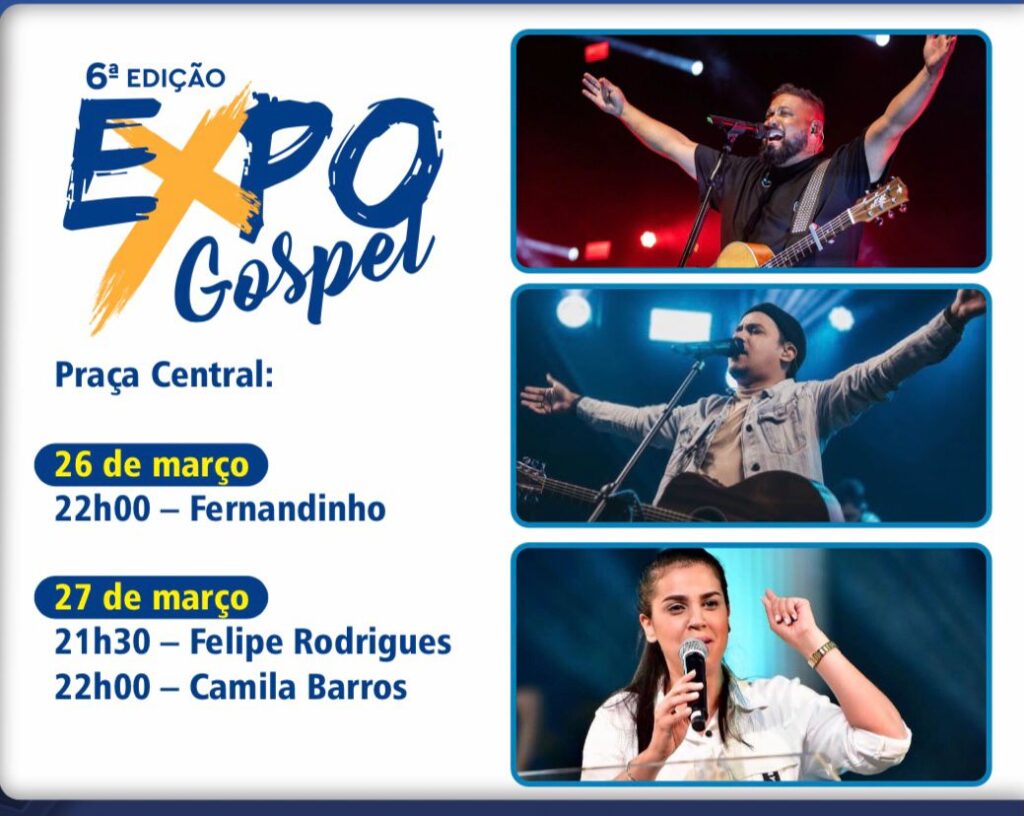 Outro grande destaque é a 6ª Expo Gospel, que traz nomes importantes da música cristã como Fernandinho, Felipe Rodrigues e Camila Barros, reforçando a diversidade da programação.