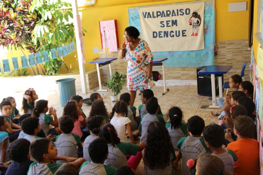 O projeto “Valparaíso sem Dengue”, desenvolvido por um grupo de agentes de endemias do município, realizou nesta sexta-feira, 15 de março, o Teatro de conscientização para alunos da Escola Municipal Elvis Cavalcante, no Jardim Oriente.