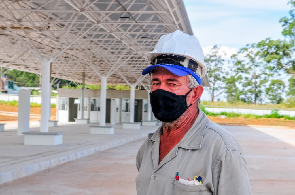 “Estou muito orgulhoso de trabalhar nessa empreitada. Já peguei muito ônibus aqui. Nessa área tinha um terminal improvisado e a gente ficava no meio da poeira ou, então, no sereno. Quando chovia, todo mundo tentava se proteger lá no comércio”, relata Evaldo.