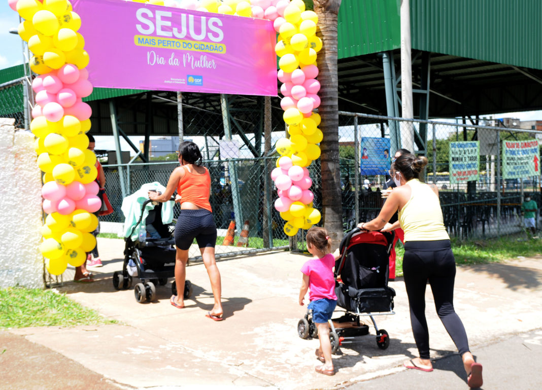 Dando início à semana em que se comemora o Dia Internacional da Mulher, a Secretaria de Justiça e Cidadania(Sejus) realizou, nesta segunda-feira (7), mais uma ação do programa Sejus Mais Perto do Cidadão, na Praça dos Direitos, em Ceilândia. O público presente teve acesso a diversos serviços públicos, como emissão de Carteira de Identidade e aplicação de doses da vacina contra a covid-19.