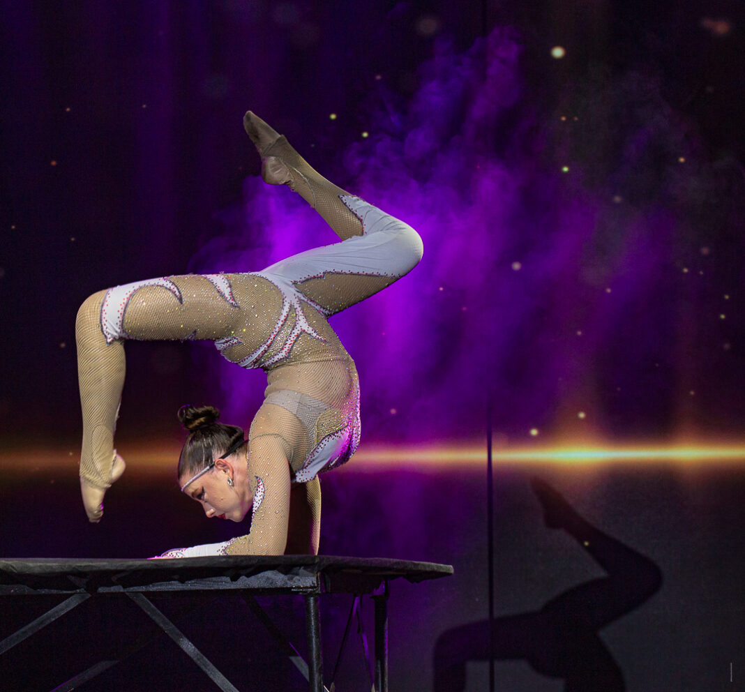 Entre os momentos mais aguardados está o Globo da Morte, conduzido por um piloto premiado internacionalmente e reconhecido por realizar a manobra histórica de looping em pé e sem as mãos, feito considerado único no mundo. Ao lado dele, a globista Raquel Brandão reforça a potência técnica do número, imprimindo precisão e protagonismo feminino a um dos atos mais radicais do circo.