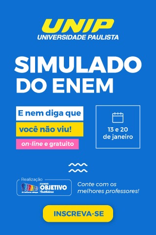 Não conseguiu participar no dia 13? Não tem problema. Dia 20 tem mais uma rodada desta maratona. Inscreva-se pelo link https://www.unip.br/eventos-unip/enem-unipobjetivo/ e aproveite.